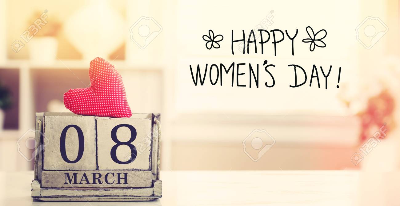 8 March Happy Women’s Day Message With Wooden Block Calendar Stock